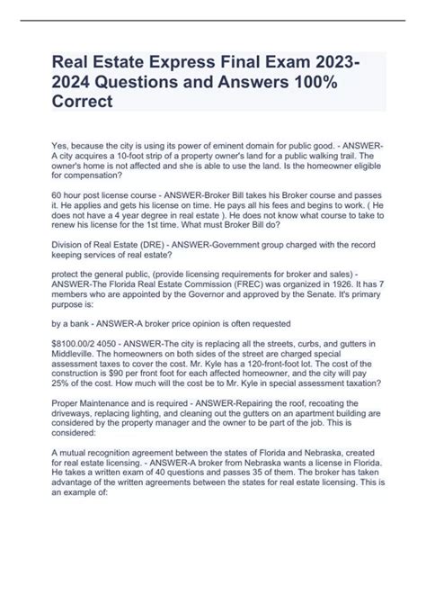 Free PDF Florida Real Estate Express Final Exam Answers Doc BookBoon